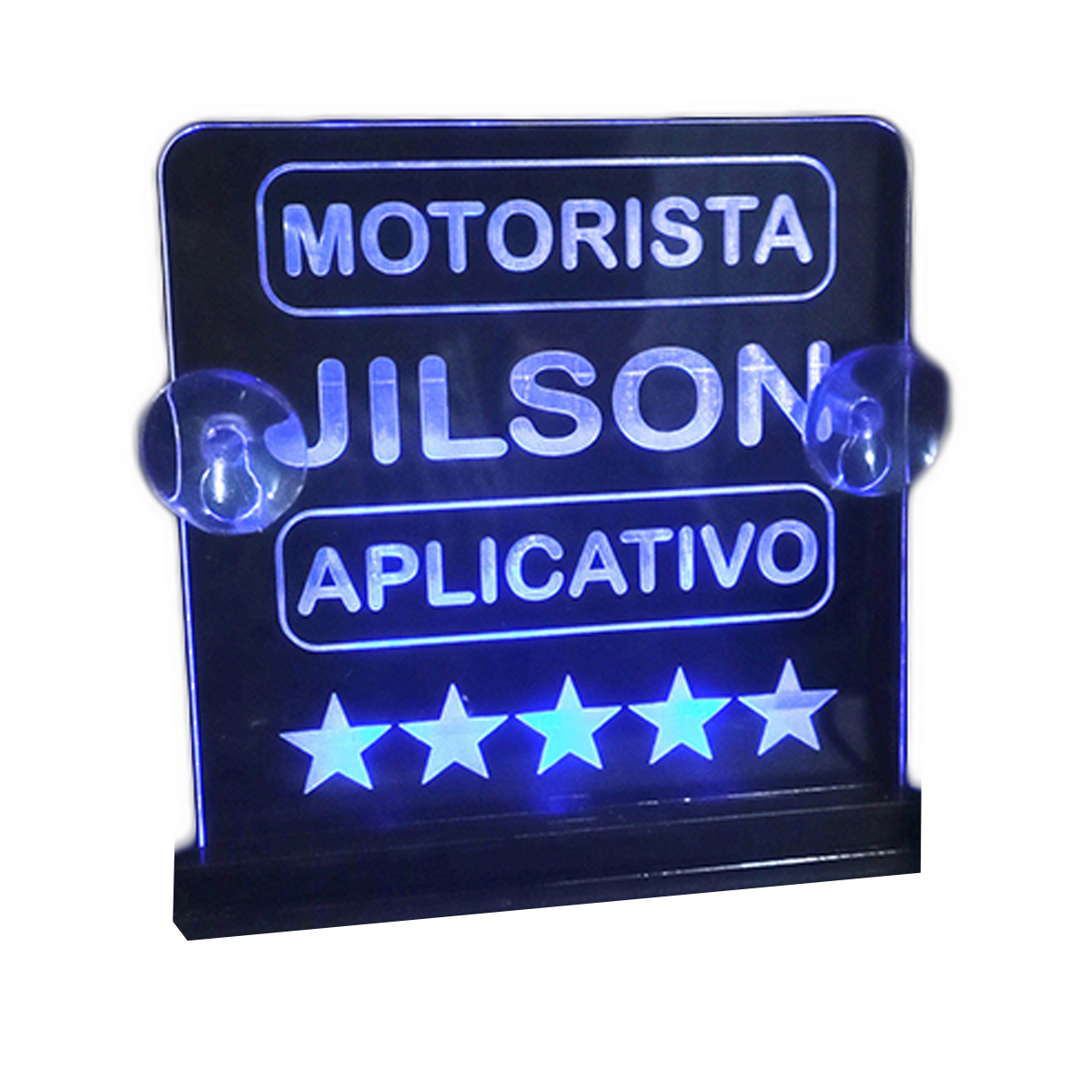placa led carro | placa personalizada motorista | placa led app | placa uber 10x10 | placa com nome led | placa acrílico iluminada | placa led personalizada carro | led azul royal | placa com ventosa led | placa luminosa carro